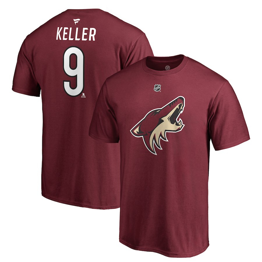 Arizona Coyotes мъжка тениска purple #9 Clayton Keller Stack Logo Name & Number