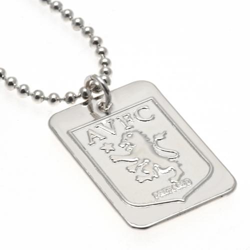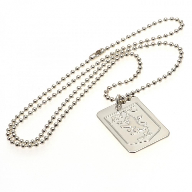 Aston Villa колие с висулка куче Silver Plated Dog Tag & Chain