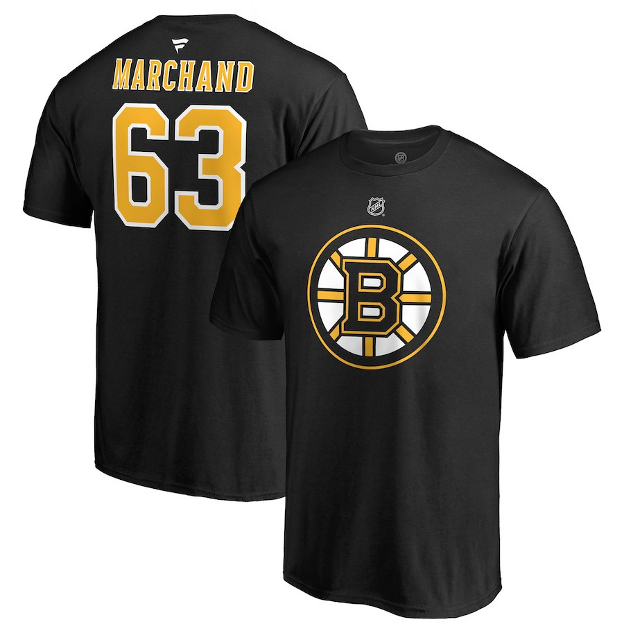 Boston Bruins мъжка тениска black #63 Brad Marchand Stack Logo Name & Number