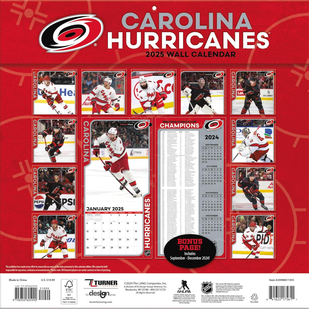 Carolina Hurricanes календар 2025 Wall Calendar