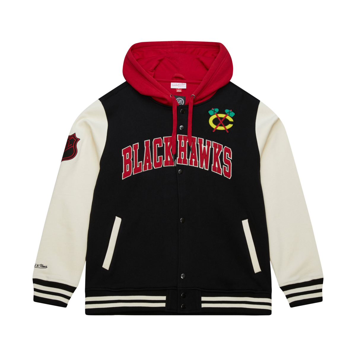 Chicago Blackhawks мъжки суитшърт с качулка Courtside Fleece Button Front Vintage Logo