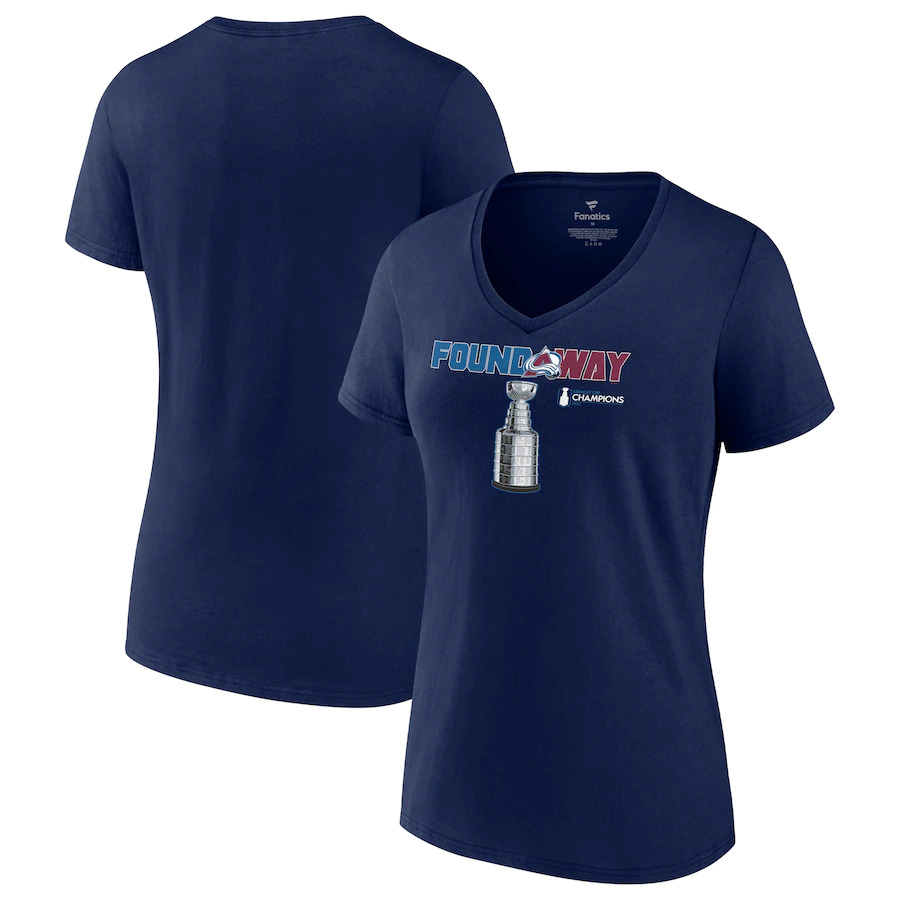 Colorado Avalanche дамска тениска 2022 Stanley Cup Champions Celebration V-Neck blue