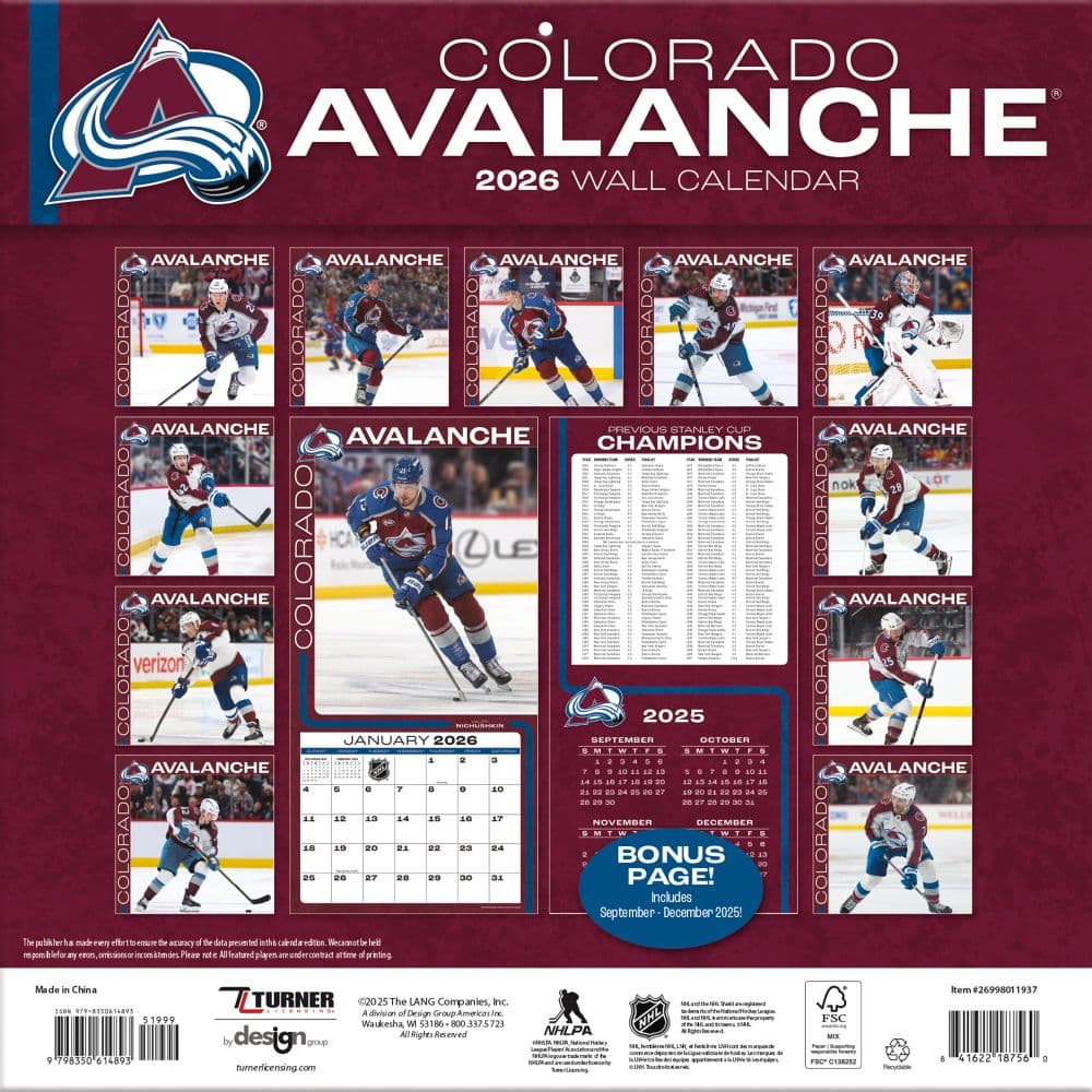 Colorado Avalanche календар 2026 Wall