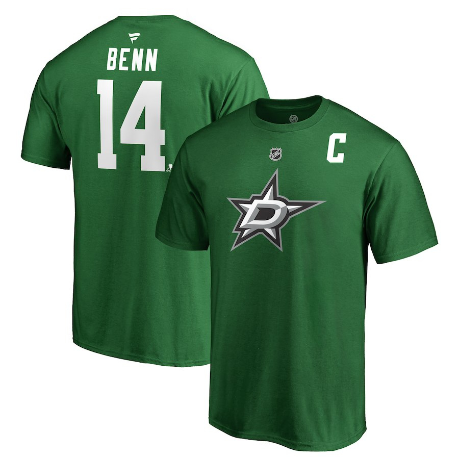 Dallas Stars мъжка тениска green #14 Jamie Benn Stack Logo Name & Number
