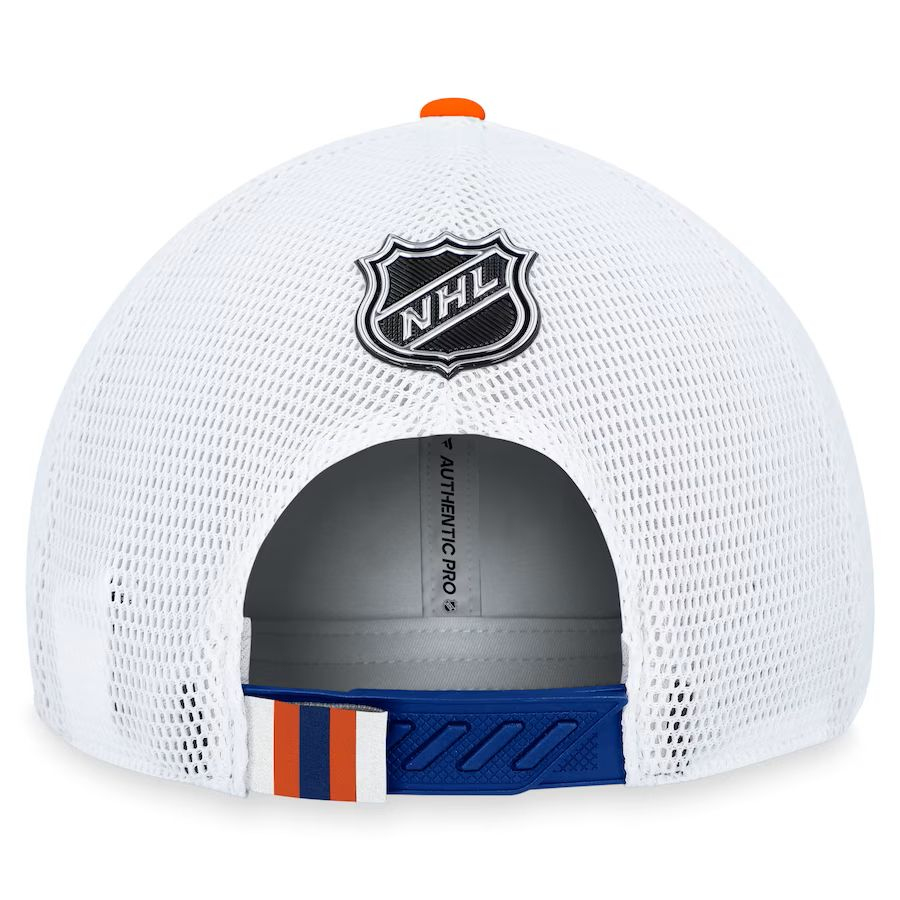 Edmonton Oilers баскетболна шапка с козирка Draft 2023 Podium Trucker Adjustable Authentic Pro
