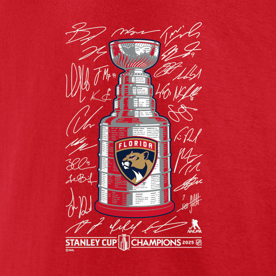 Florida Panthers мъжка тениска 2025 Stanley Cup Champions Signature Roster red