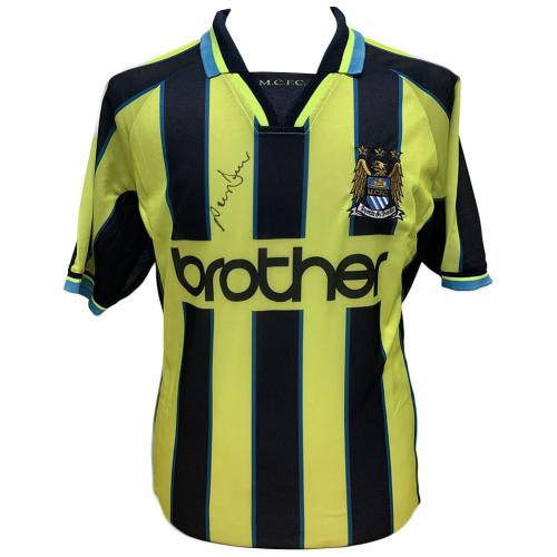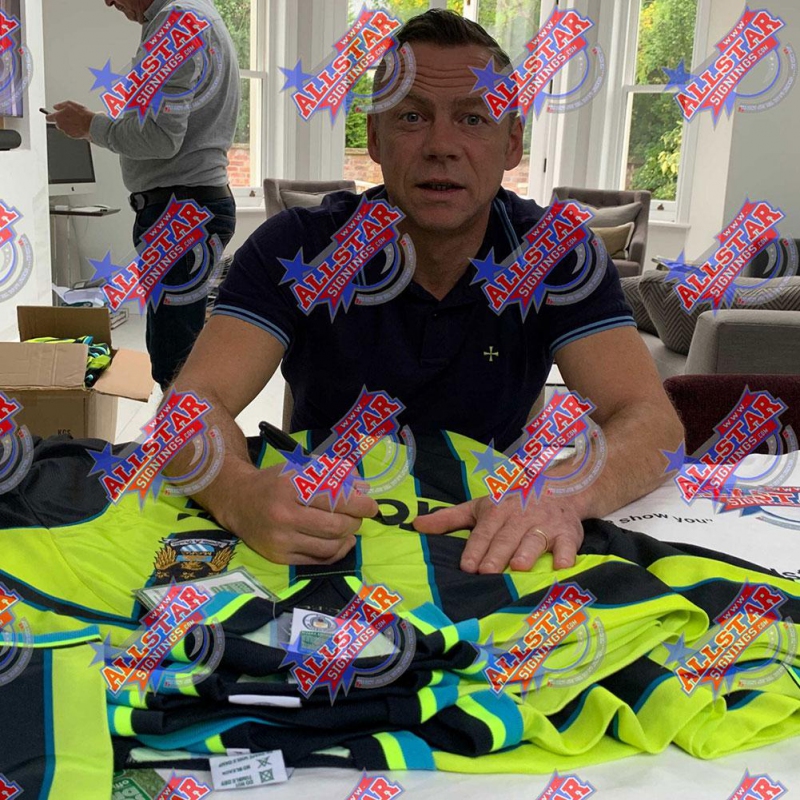 Легенди футболна фланелка Manchester City Dickov 1999 Signed Shirt