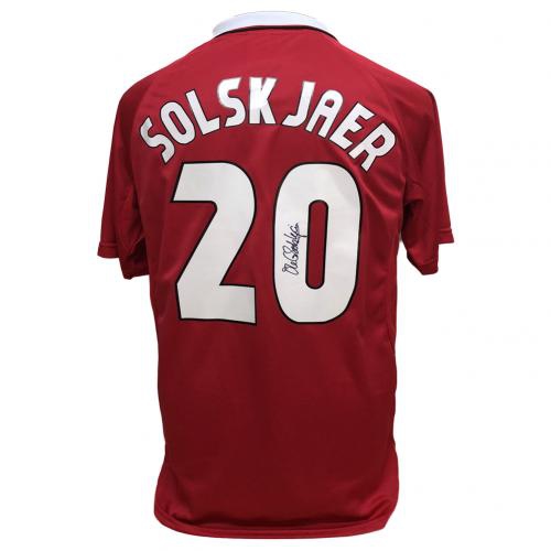 Легенди футболна фланелка Manchester United FC Solskjaer 1999 Signed Shirt