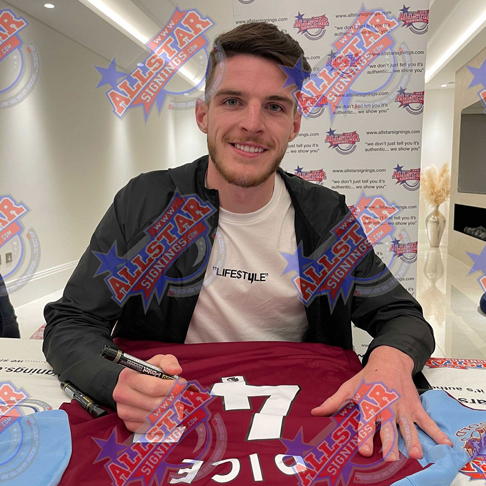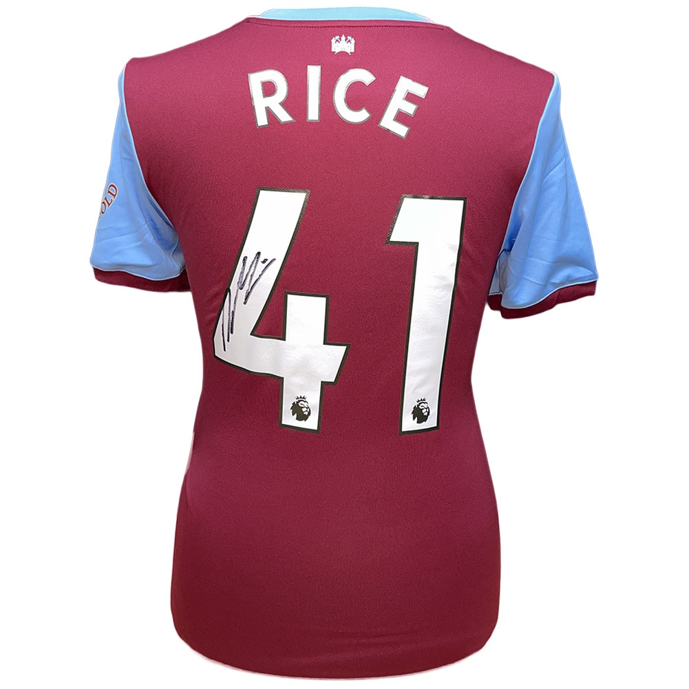 Легенди футболна фланелка West Ham United FC Rice Signed Shirt