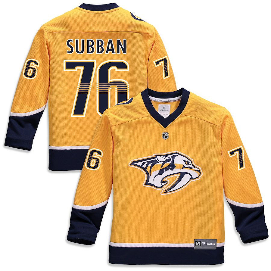Nashville Predators детска хокейна фланелка yellow #76 P.K. Subban Replica Home Jersey