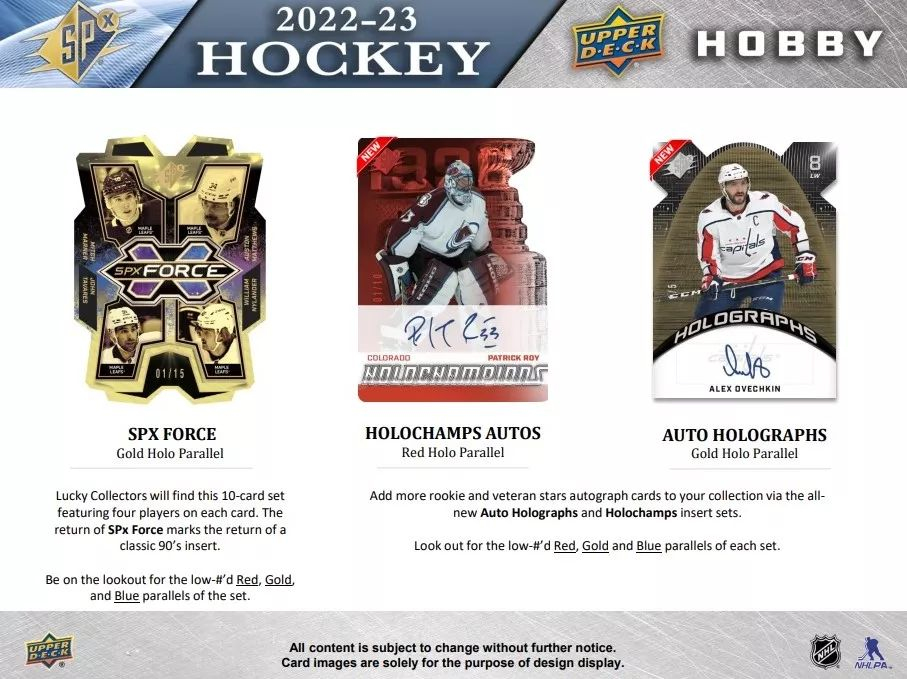 NHL кутии хокей карти NHL 2022-23 Upper Deck SPx Hockey Hobby Box
