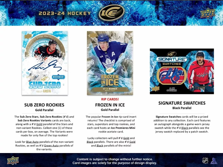 NHL кутии хокей карти NHL 2023-24 Upper Deck Ice Hobby Balíček