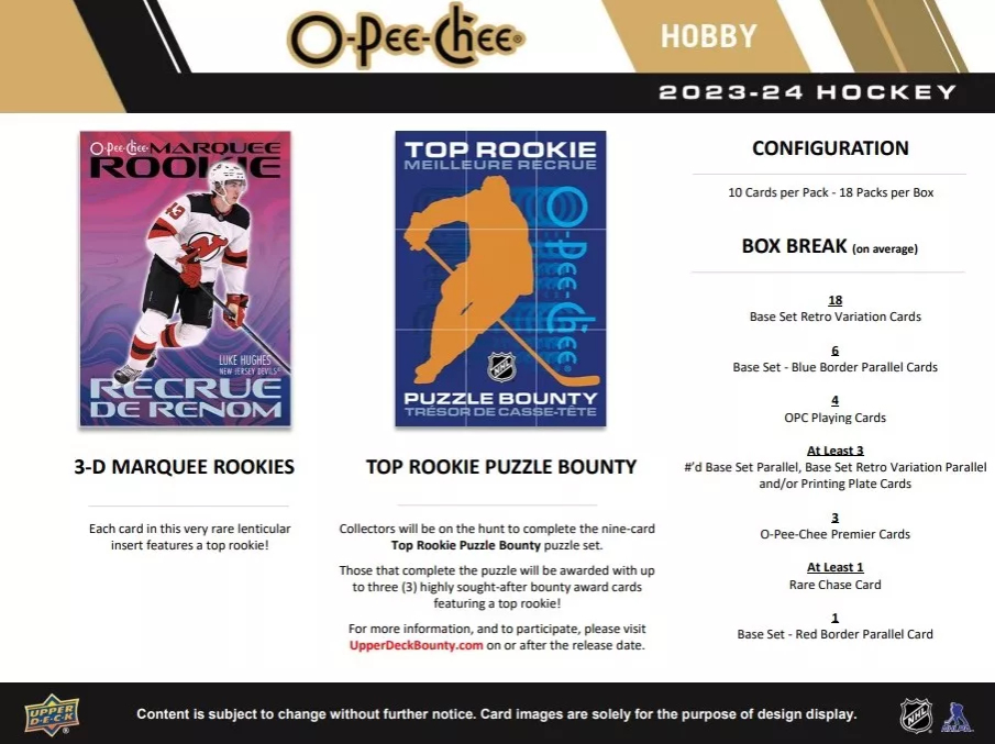 NHL кутии хокей карти NHL 2023-24 Upper Deck O-Pee-Chee Hobby Box