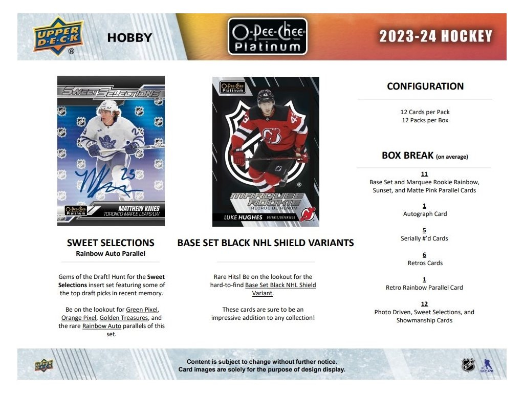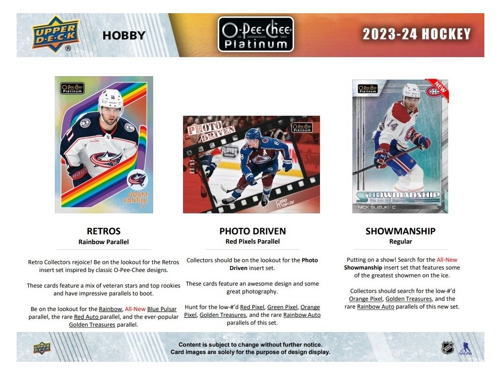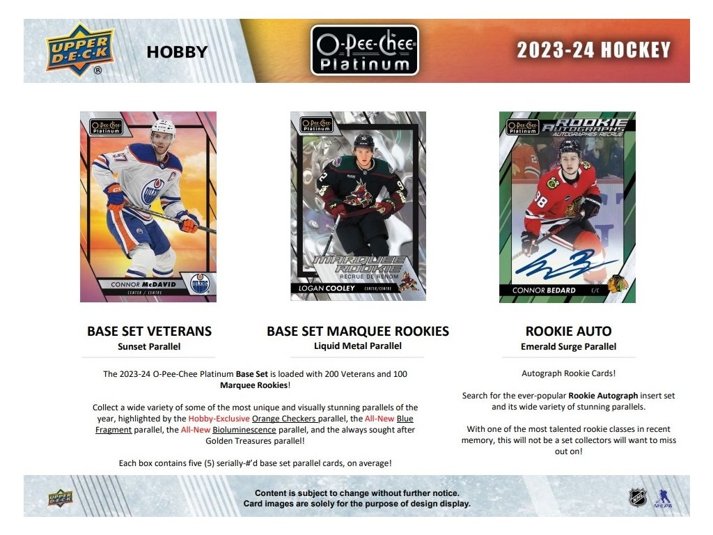 NHL кутии хокей карти NHL 2023-24 Upper Deck O-Pee-Chee Platinum Hobby Box