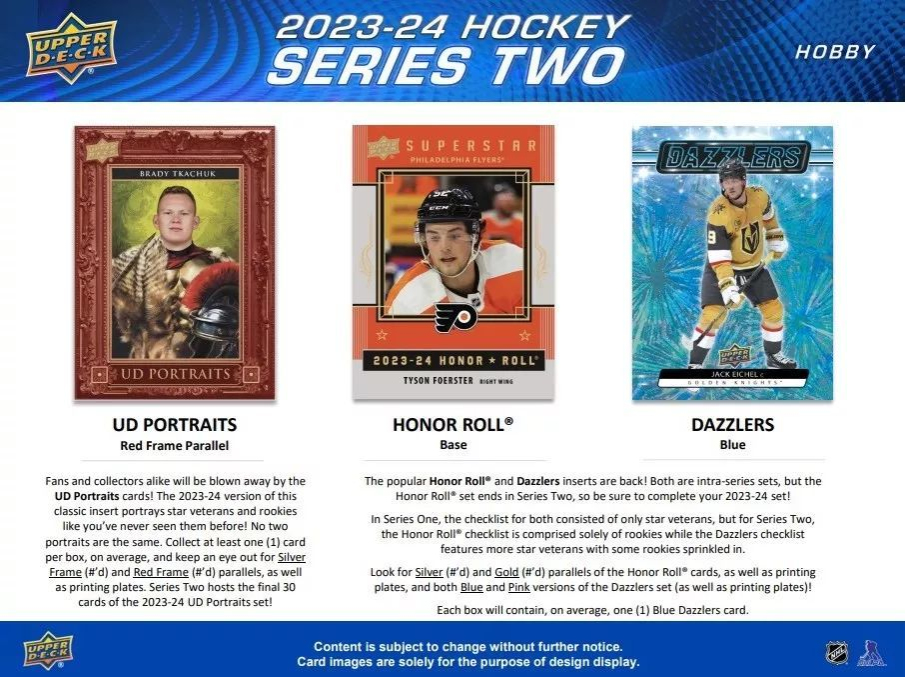 NHL кутии хокей карти NHL 2023-24 Upper Deck Series 2 Hobby Box