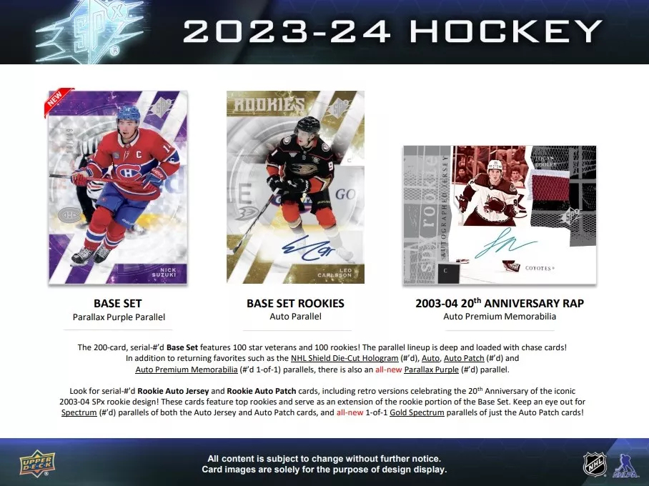 NHL кутии хокей карти NHL 2023-24 Upper Deck SPx Hockey Hobby Box