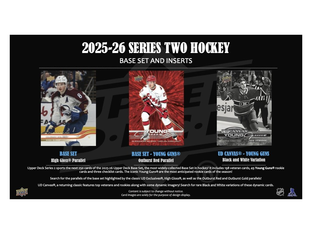 NHL кутии хокей карти NHL 2025-26 Upper Deck Series 2 Hobby Box