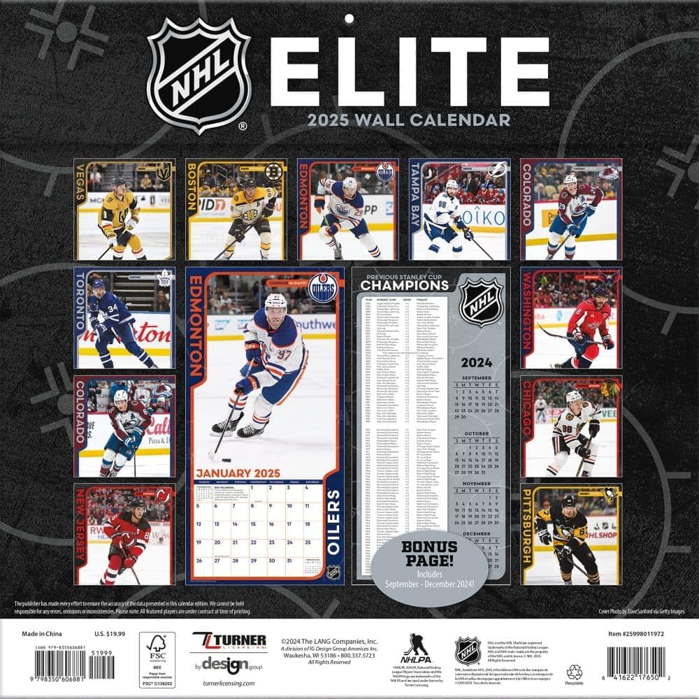 NHL продукти календар Elite 2025 Wall Calendar
