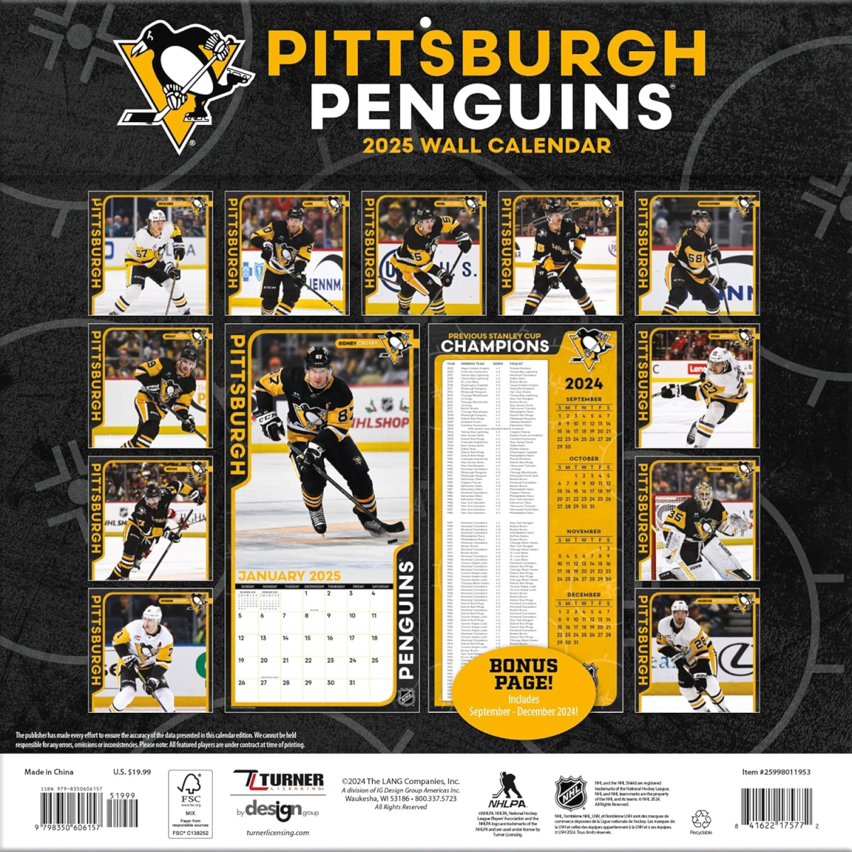Pittsburgh Penguins календар 2025 Wall Calendar