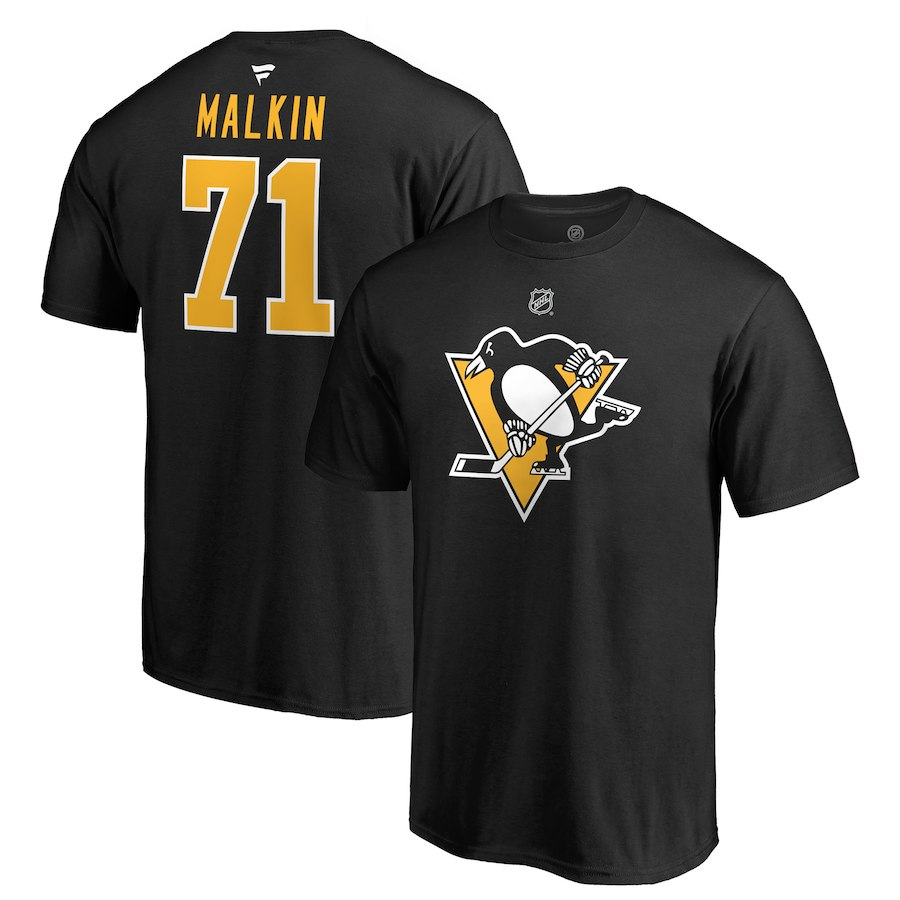 Pittsburgh Penguins мъжка тениска black #71 Evgeni Malkin Stack Logo Name & Number