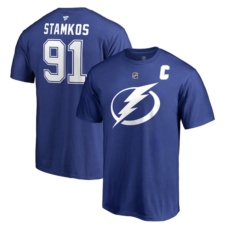 Tampa Bay Lightning мъжка тениска blue #91 Steven Stamkos Stack Logo Name & Number