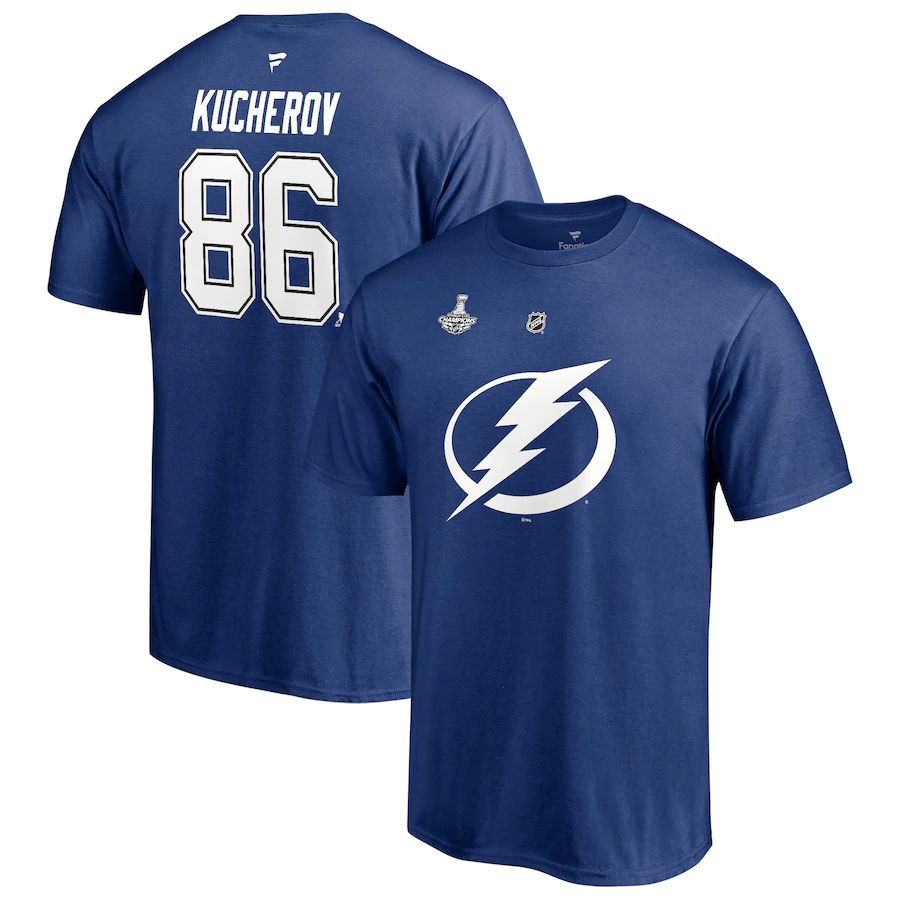 Tampa Bay Lightning мъжка тениска Nikita Kucherov #86 Tampa Bay Lightning 2021 Stanley Cup Champions Name & Number