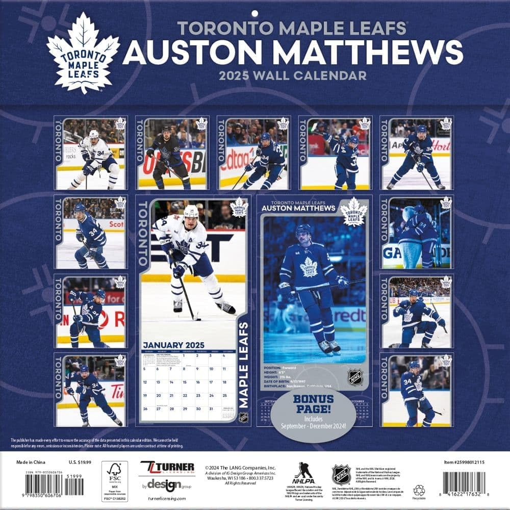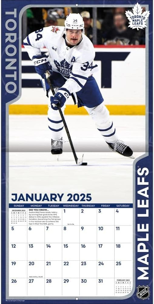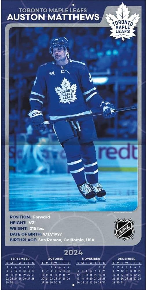 Toronto Maple Leafs календар #34 Auston Matthews 2025 Wall Calendar