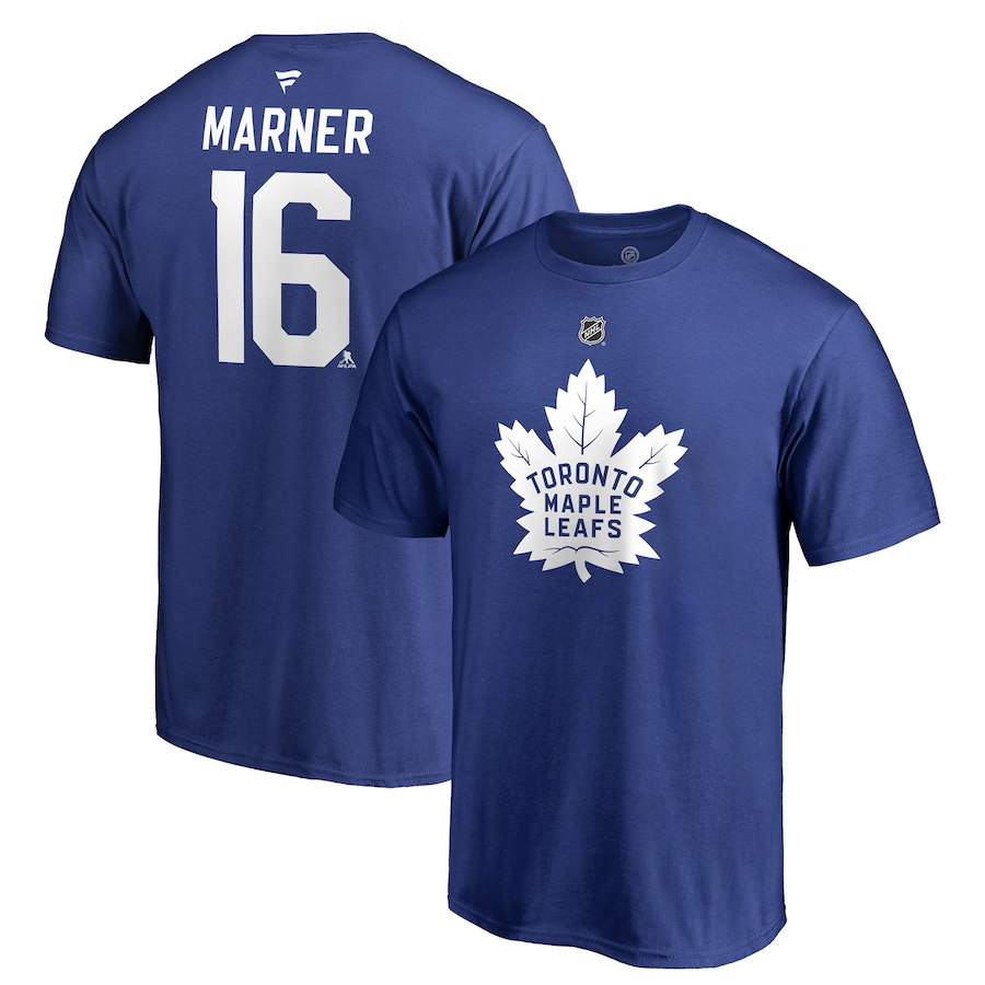 Toronto Maple Leafs мъжка тениска blue #16 Mitch Marner Stack Logo Name & Number