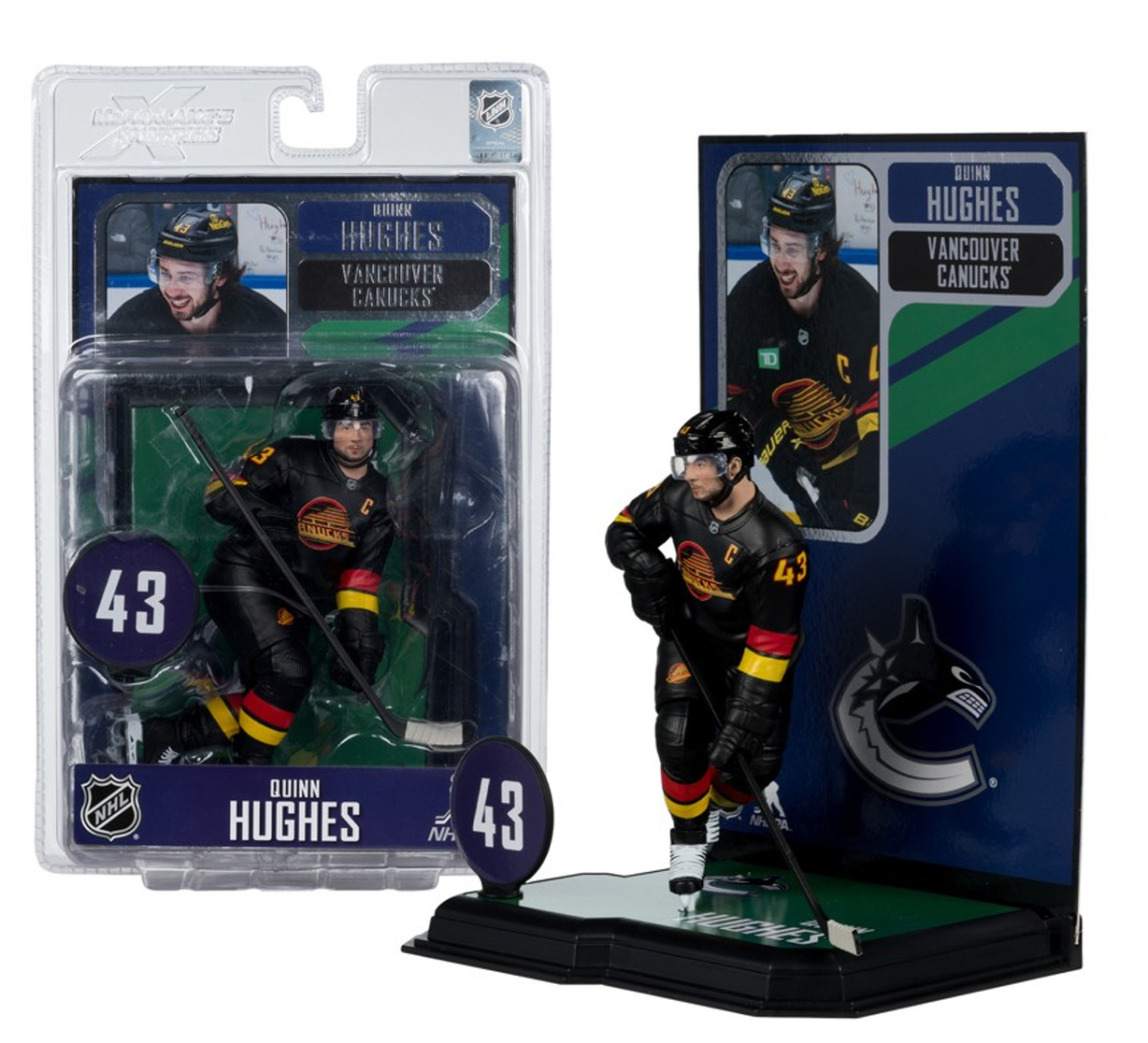 Vancouver Canucks фигурка Quinn Hughes #43 SportsPicks Black Jersey
