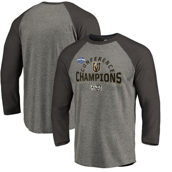 Vegas Golden Knights мъжка тениска grey 2018 Western Conference Champions Boarding Raglan Long Sleeve Tri-Blend