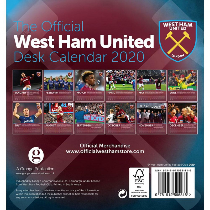 West Ham United настолен календар 2020