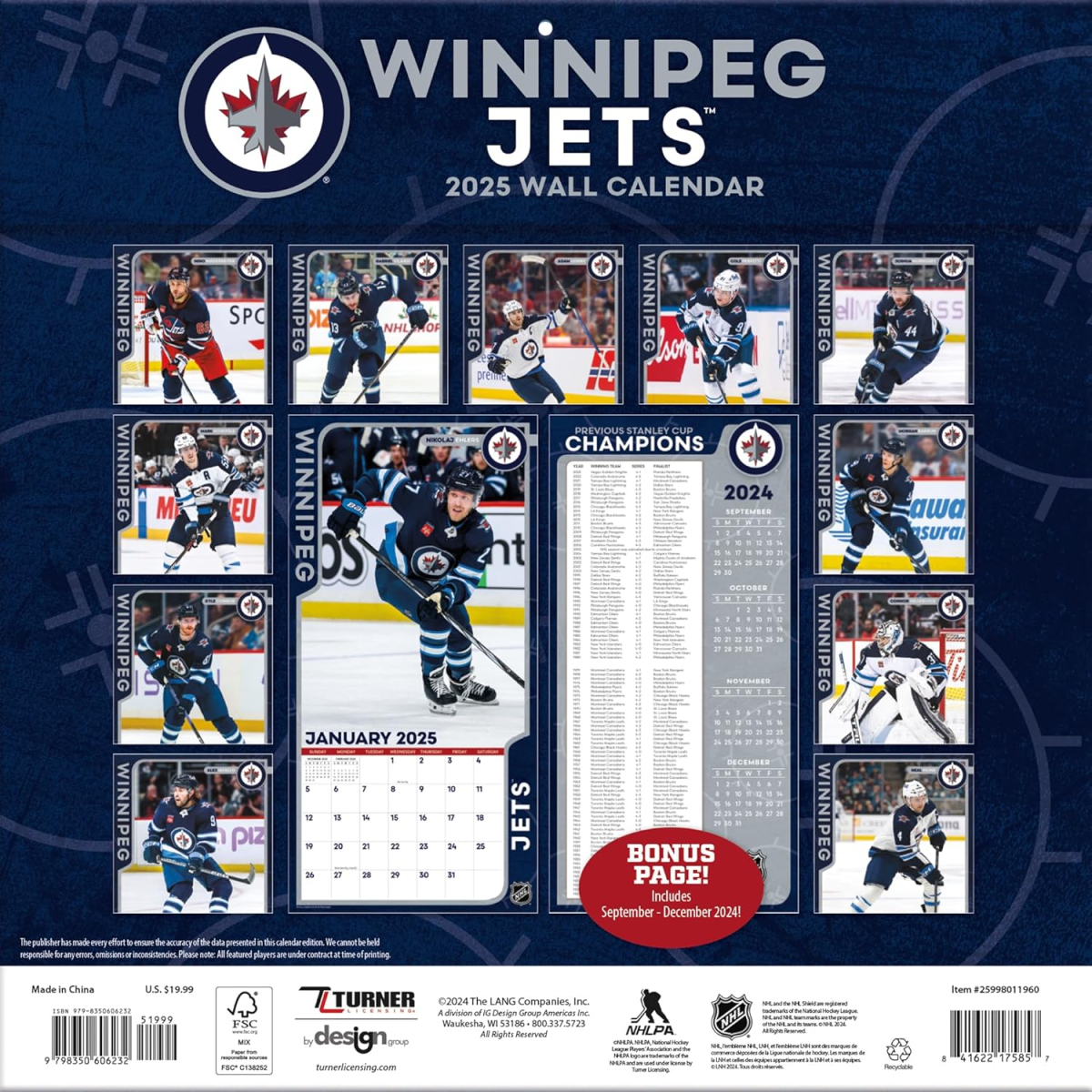 Winnipeg Jets календар 2025 Wall Calendar