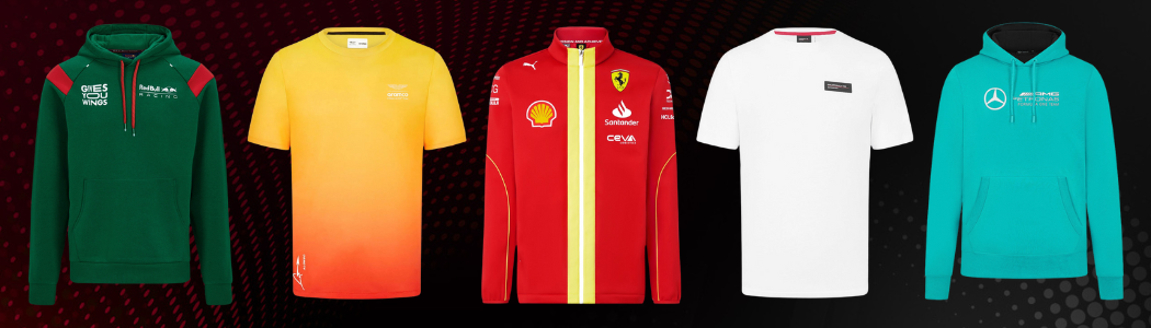 Формула 1 – оригинални мърчове на отбори като Ferrari, Mercedes-AMG, Red Bull Racing, McLaren, Aston Martin и други